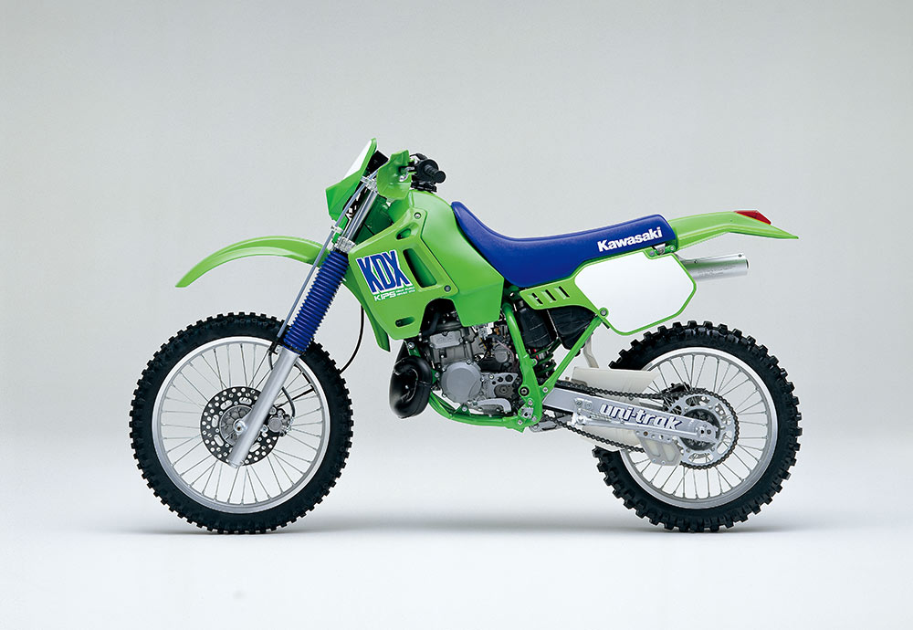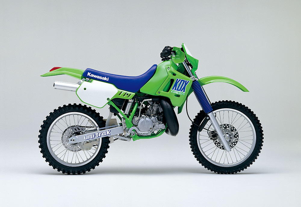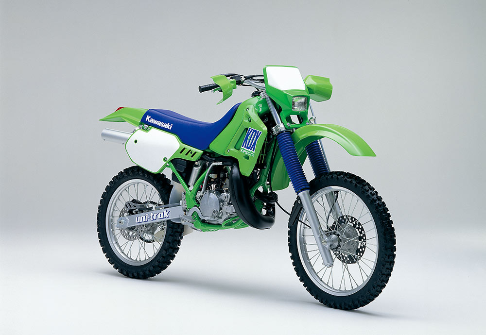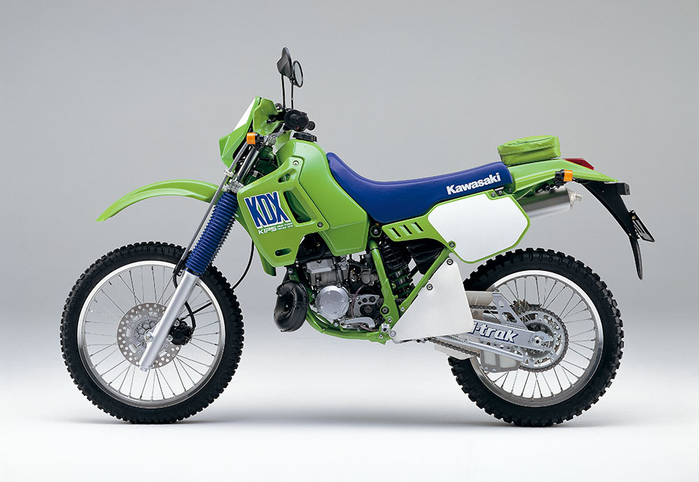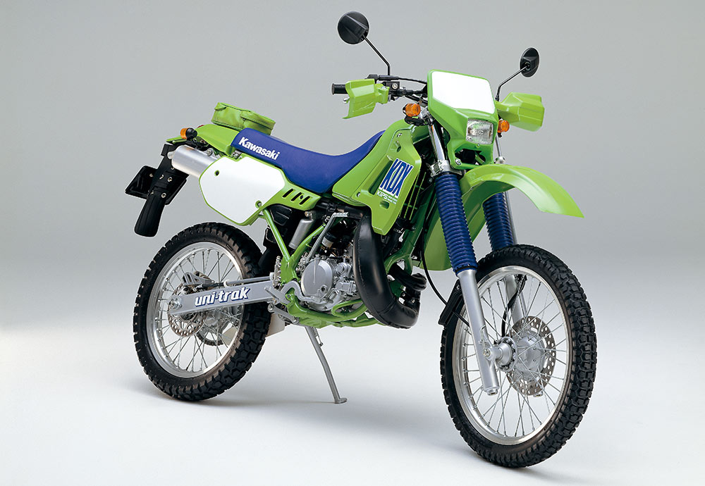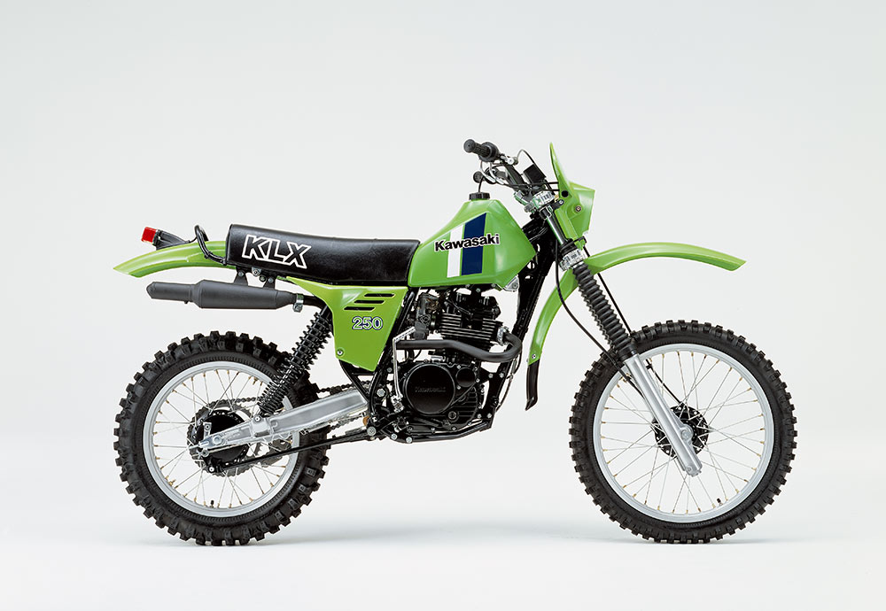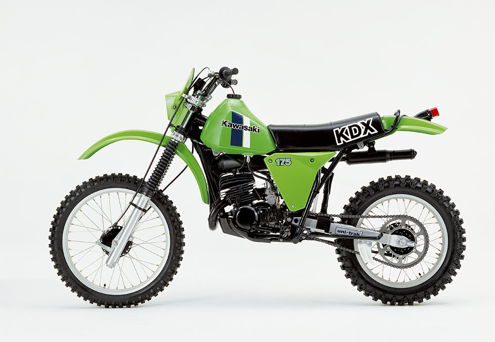 1979年型KDX400を皮切りに2ストロークエンデューロモデルが続々デビューし、新しいカテゴリーが確立される中でベストセラーとなったのが、1980年にデビューしたKDX175。後にKDX200へと進化し、80・250・450なども含めたラインナップの中核モデルとして支持を得た。当初は砂漠で水が確保できなくなる危険性を想定して、空冷エンジンを基本仕様としていたが、高性能が求められるKDXシリーズは、やがて水冷化の道をだどる。