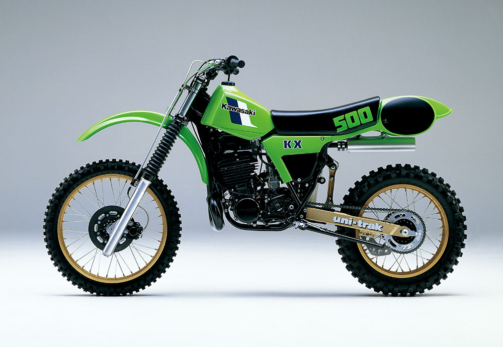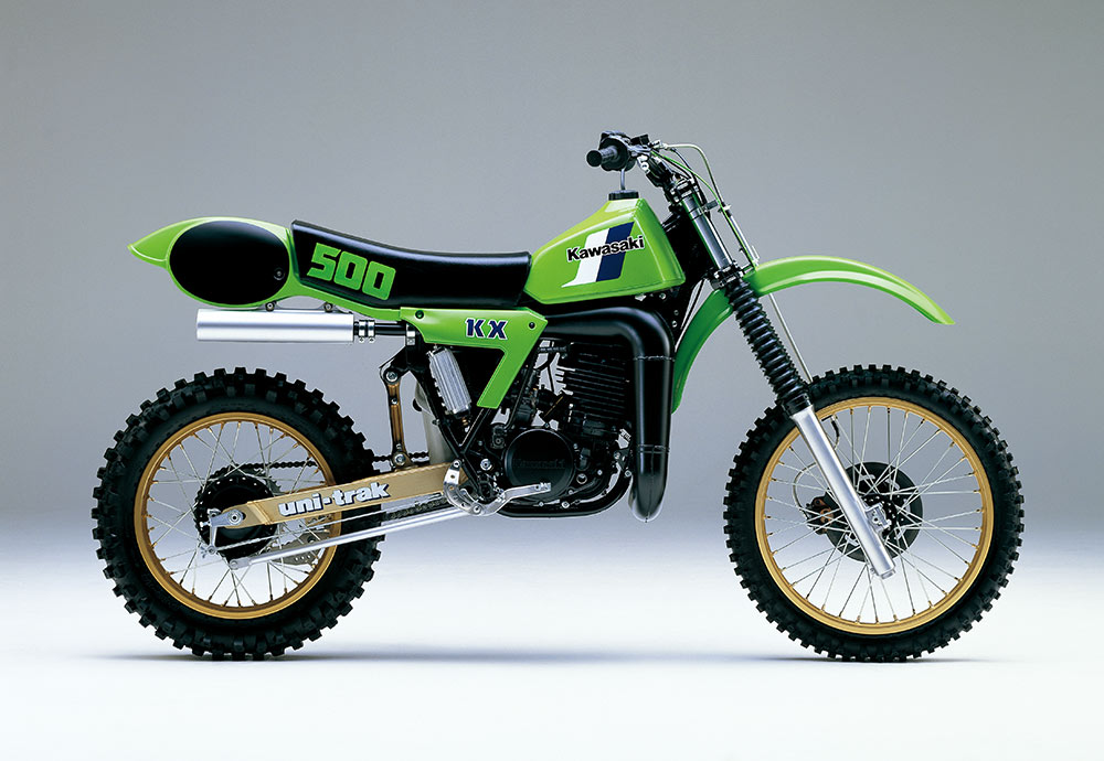 カワサキはオープンクラスのレースに、KX400、KX420、KX450などを投入してきたが、やがて排気量はレギュレーション上限に到達、1983年にKX500が誕生することになった。カワサキのモンスターマシンに乗ったAMAナショナル500チャンピオンは、ブラッド・ラッキー、ジミー・ワイナート、ジェフ・ワード、マイク・キドラウスキー、マイク・ラロッコ。500クラスは1993年を最後に廃止されたが、晩年はライムグリーンが猛威を振るうシーズンとなった。
