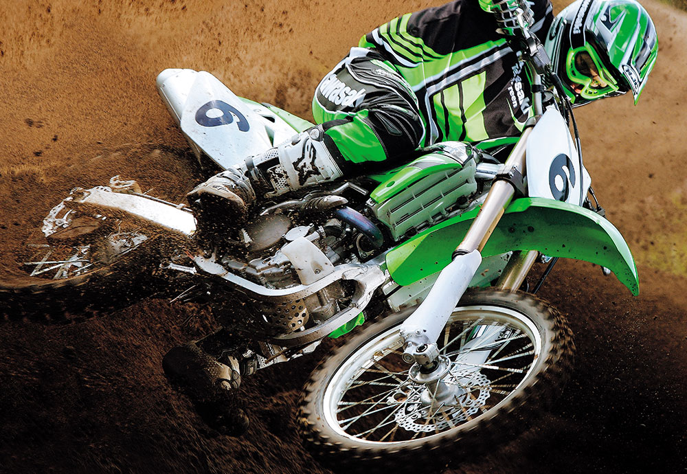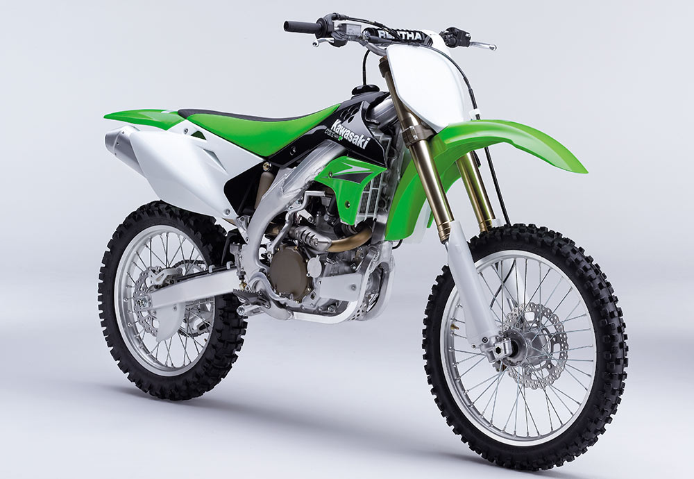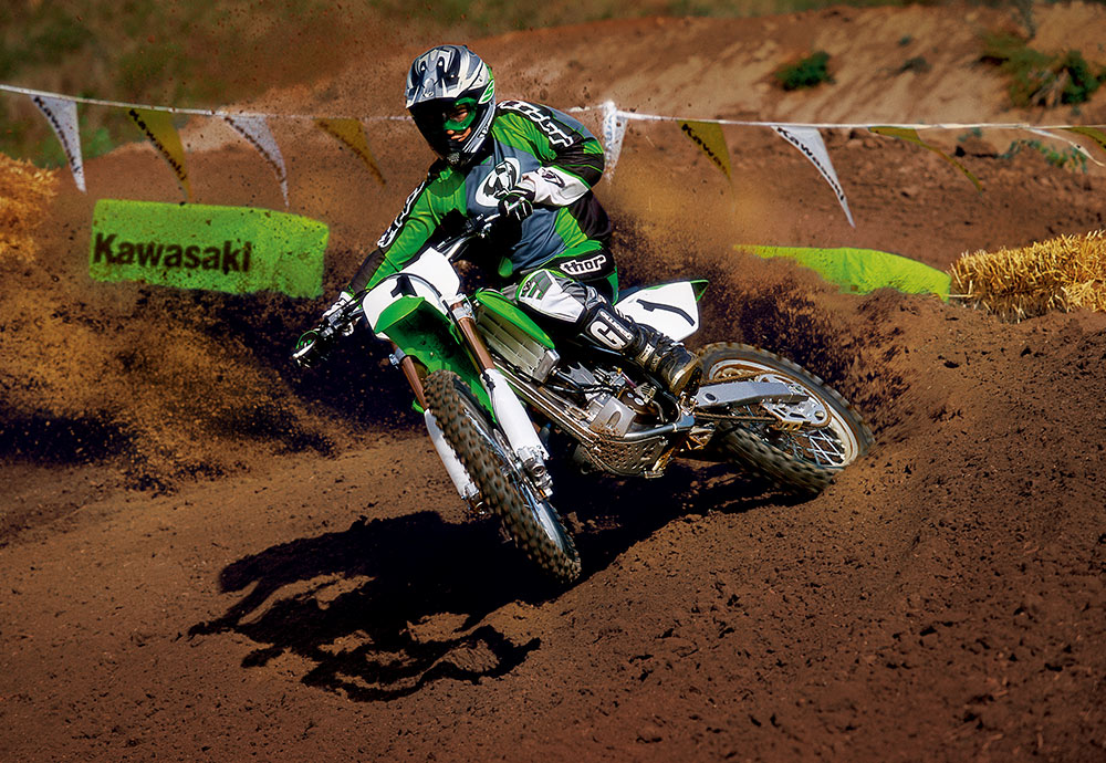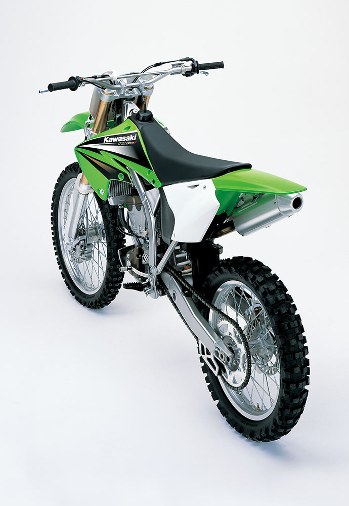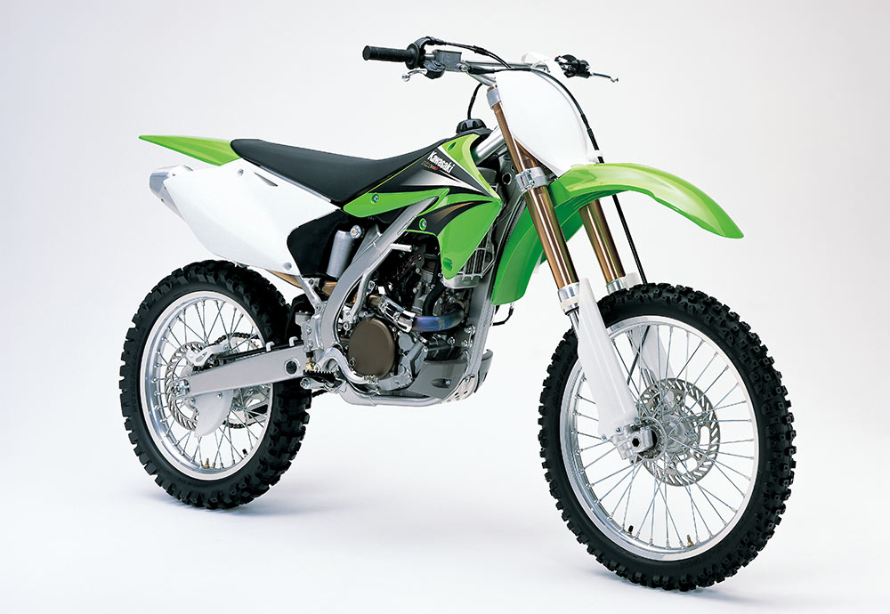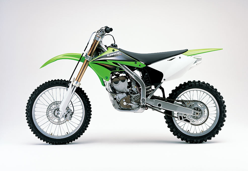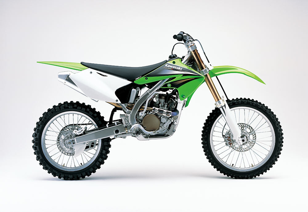4ストローク化の波はプレミアクラスにも押し寄せ、KX450Fがフラッグシップモデルとして登場した。新開発のDOHCエンジンは、56.4PS/8,500rpmを絞り出し、勝つための動力性能を発揮。同時にフルモデルチェンジしたKX250Fと同様に、アルミ製ペリメターフレームが採用された。レース現場では2ストローク車と併用する過渡期を迎えたが、パワーやトラクション性能などに優れる4ストローク車が、やがて世界を席巻することになる。