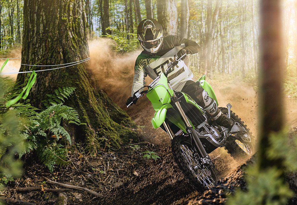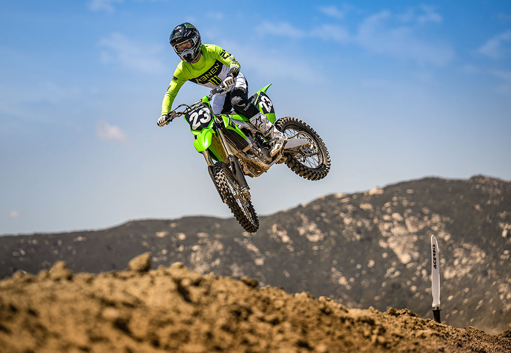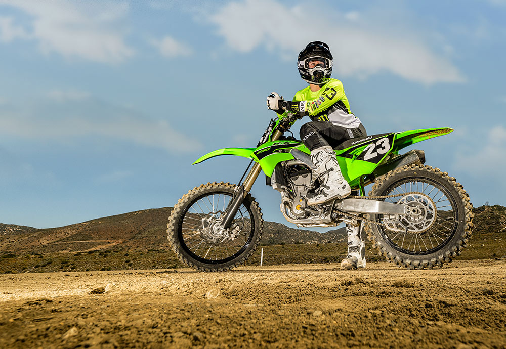 2020年モデルでフィンガーフォロワーロッカーアームを採用した新型エンジンを搭載し、2021年モデルで新型フレームに加え油圧クラッチ、セルフスターターを装備するなど大きなアップデートを経て、2023年モデルのKX250では戦闘力を更に向上。エンジンは吸排気系などの変更により全回転域でパワーアップ。また、サスペンションセッティングの最適化やワイドなリヤタイヤを採用することで、コーナリング性能やトラクション性能を高めている。