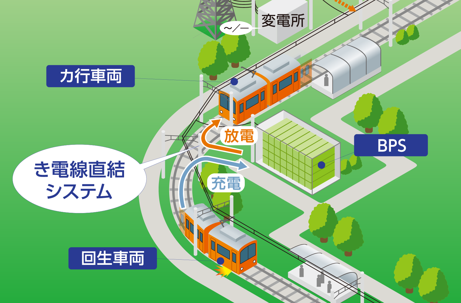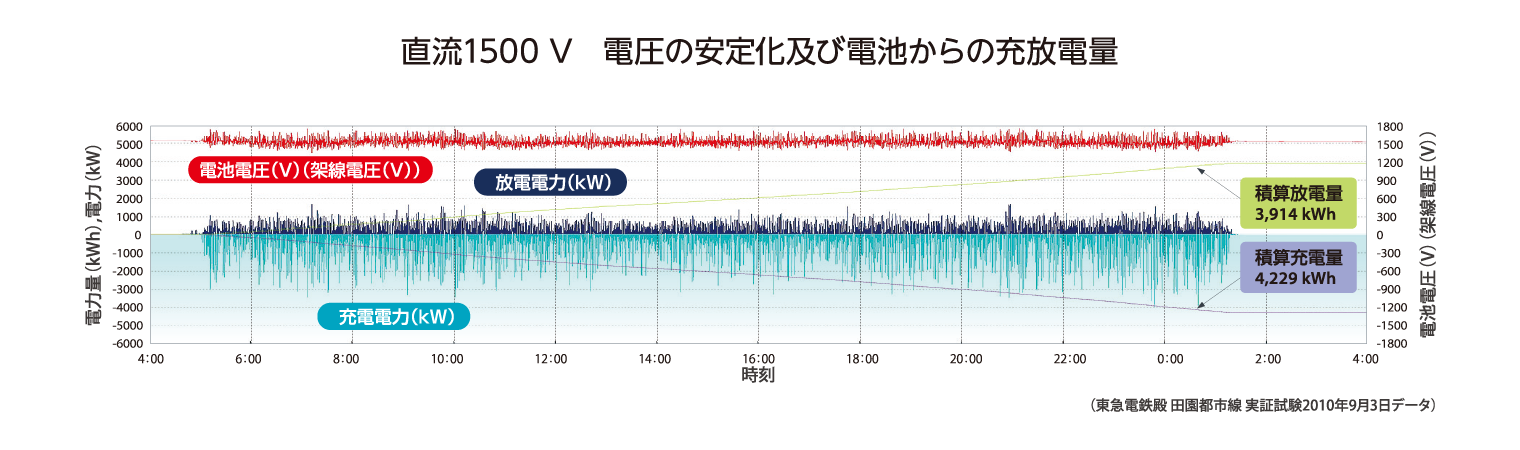- BPS からの充放電によりき電線電圧の変動幅を縮小します。
