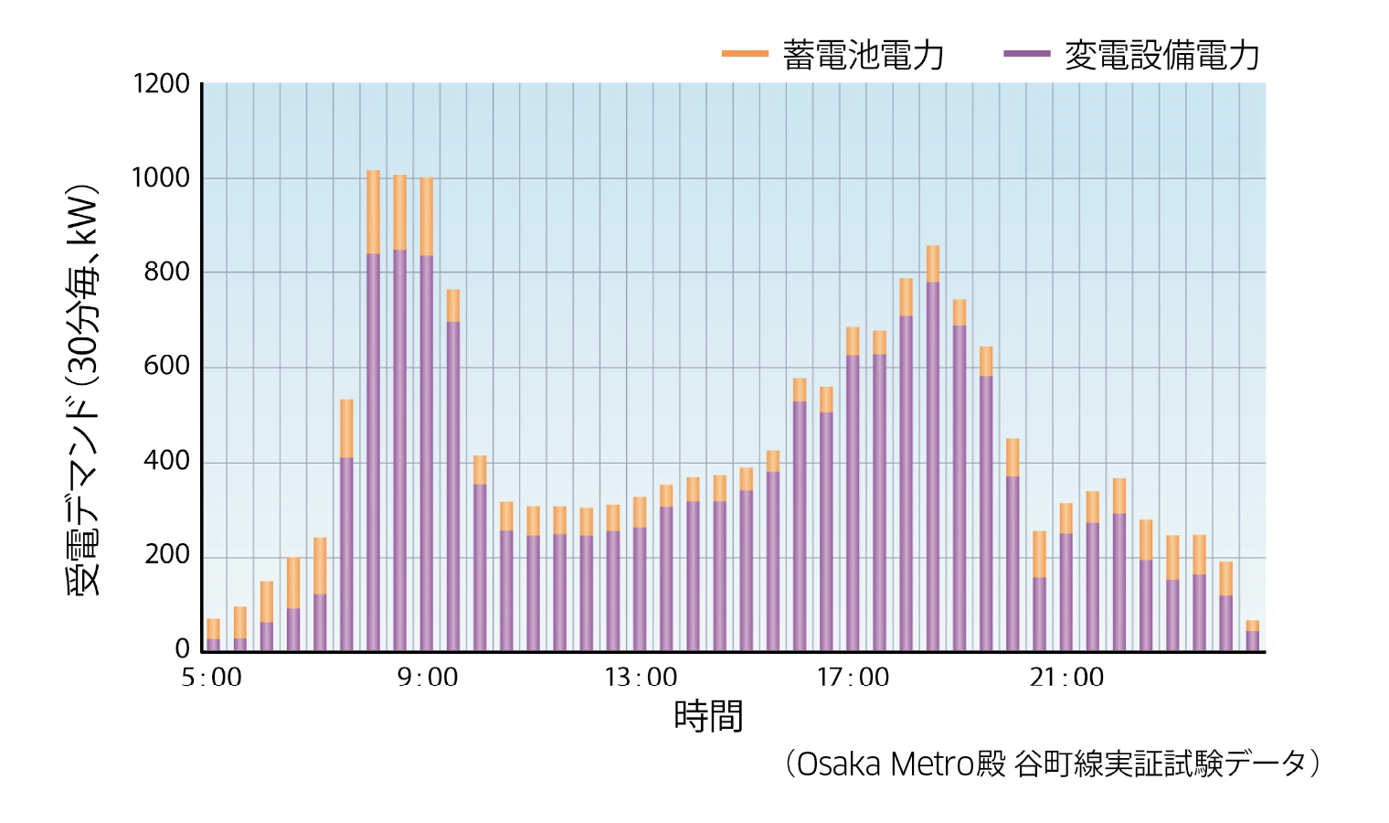 - BPS からの放電によりラッシュ時を含む全ての時間帯で 受電デマンドを削減することができます。