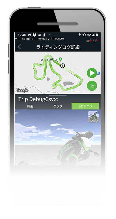 Keep a detailed riding log that can be played back for review from your smartphone. You can also view riding route, distance and time traveled.