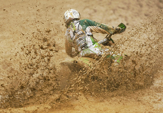 土曜の午後から降り始めた雨によって、コースは超マディコンディションになった。先にスタートしたMX2のレース1では、終盤の粘りでポーランが優勝したが、MX1のレース1はより深くなったワダチと沼がライダーを苦しめることになる。ドライコンディションであればアップダウンが見どころになるファエンツァだが、特に登りではクラッシュやスタックが多発した。